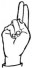 На ћирилици написано БЛАЖА ВИДОСАВЉЕВИЋ састоји се из 17 слова [?]. Исписано ћириличном једноручном азбуком за глувонеме: